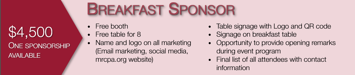 Sponsorships currently available. Please contact Diane Lewis @ diane.lewis@mrcpa.org for more information.
